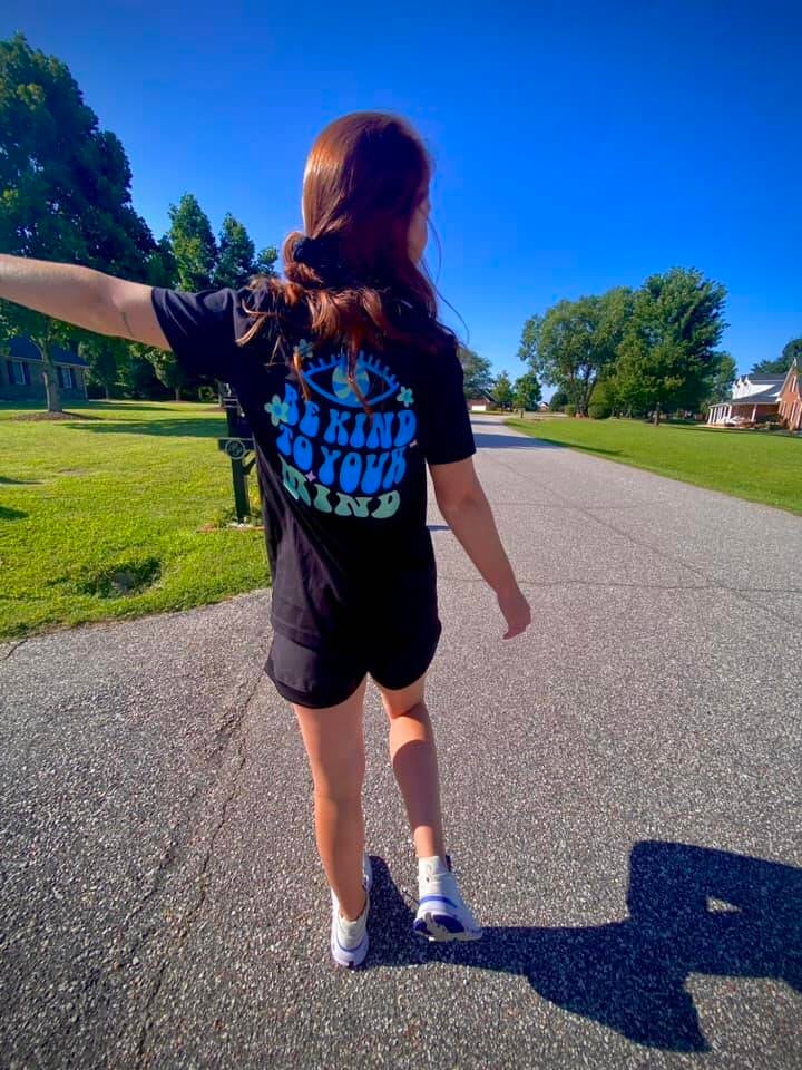 Love this super comfy t-shirt! Mental health is so real and so important. This shirt is a constant reminder for me to be kind to myself!